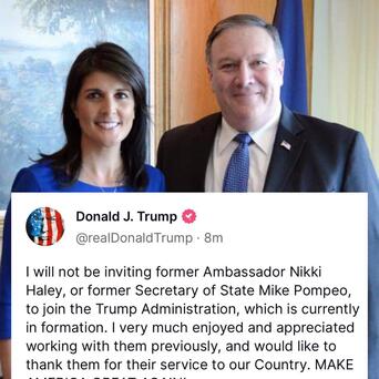 【川普给入阁定规矩:被中方制裁的人弃用!】在美国和西方媒体纷纷曝出所谓川普内阁名单之后,川普终于通过社交平台X作出第一次回应:被中方列入制裁名单的蓬佩奥,弃用;开口必抹黑污蔑中方的黑莉,弃用……美媒认为川普这是亮出了能够入阁人选的基本条件,而“中国因素”似乎成为重要考量标准之一。